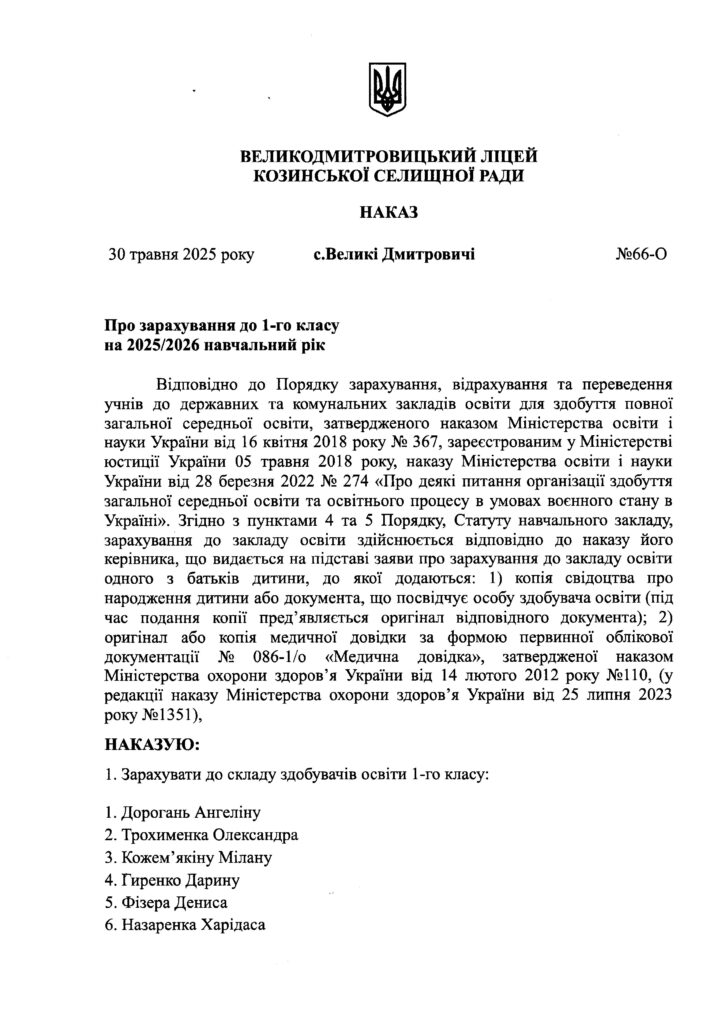 Адміністрація Великодмитровицької гімназії